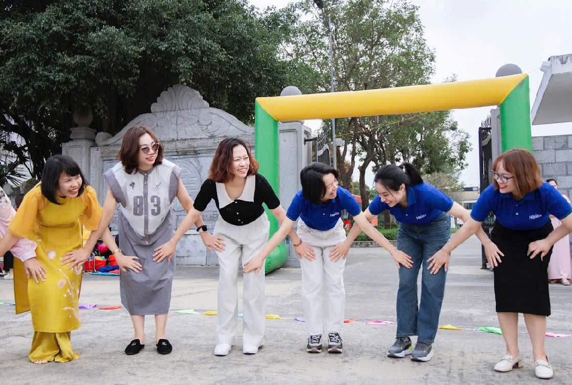 Tạm gác lại những công việc chuyên môn tại văn phòng và nhà máy, các nữ nhân sự Nibifa đã cùng nhau tham gia vào chuỗi trò chơi vận động đòi hỏi sự phối hợp nhịp nhàng. Từ những thử thách đòi hỏi sự khéo léo đến những trò chơi cần sức mạnh tập thể, tất cả đều được các chị em hưởng ứng nhiệt tình với tinh thần quyết tâm cao.